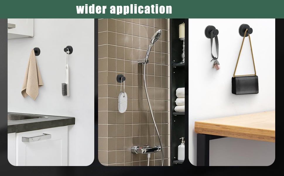 Suction hooks are suitable for flat and non-porous surfaces such as glass, mirrors, marble, ceramics, stainless steel, wood, acrylic, plastics, and laminates.