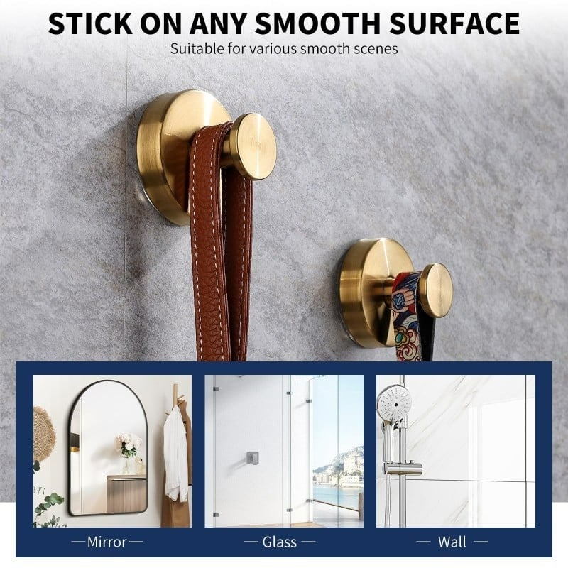 Suction hooks are suitable for flat and non-porous surfaces such as glass, mirrors, marble, ceramics, stainless steel, wood, acrylic, plastics, and laminates.